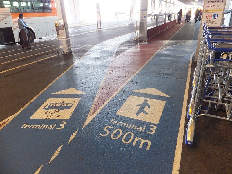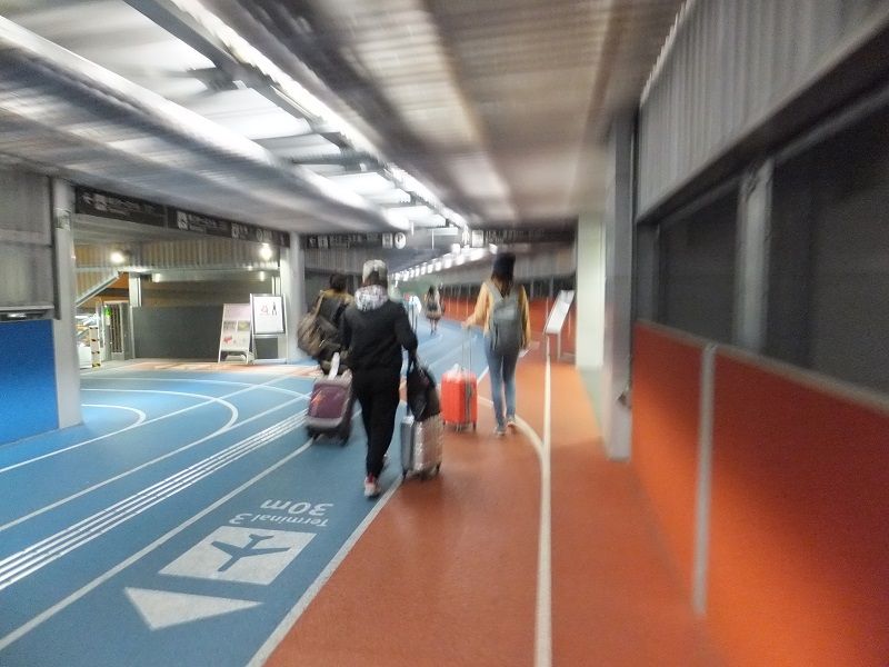 といった感じでしょうか。なお、連絡通路は客が横に広がって道をふさいでいる場合があるので、走るに走れない可能性があります(行ったときまさにそうでした。せっかくトラックがあるんだから枠内に収まれよ)。この辺は運任せになってしまうので、まずは時間にかなり余裕を持って移動することが重要です(LCCの鉄則ですね)。