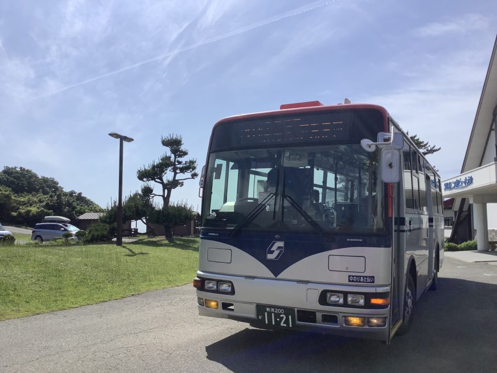 残念なことに2024年4月から内海府線は真更川~岩谷口の延長運転を中止、さらに土休日はデマンド運行となってしまいました。大野亀を訪れるにはカンゾウライナーを使うしかなさそうです。