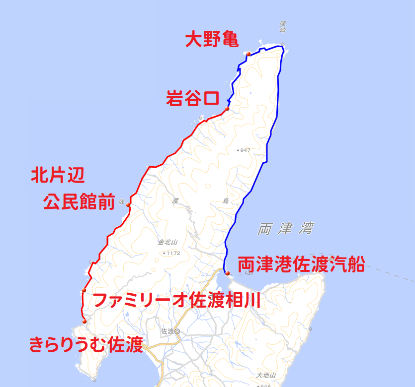区間:(岩谷口~)真更川~大野亀~両津港佐渡汽船~監督署前