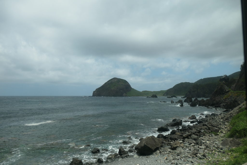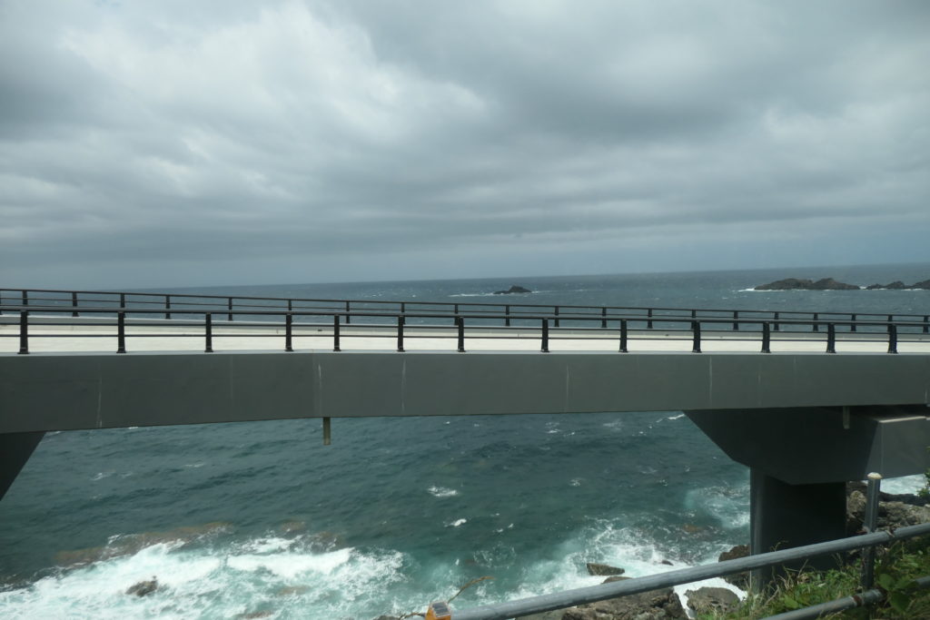 ついに大野亀が姿を現しました。しかしここ、ちょっとでも荒れたら波しぶきがかかりそうですね…