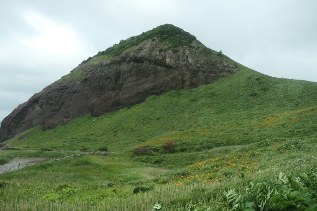いよいよ大野亀が目前に迫ると、辺りは黄色い花に包まれました。これがトビシマカンゾウです。