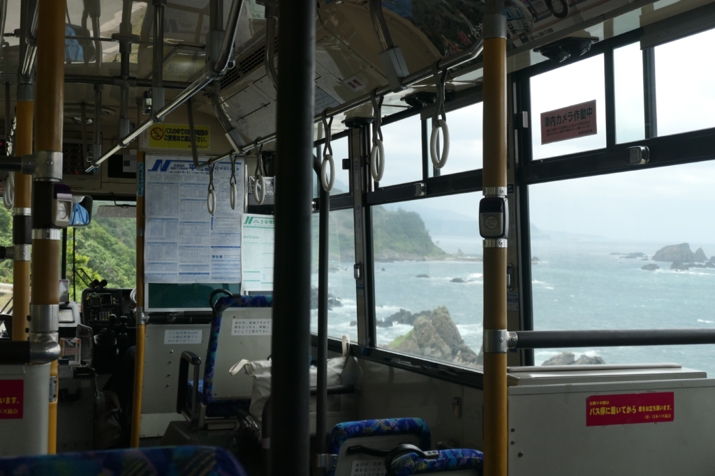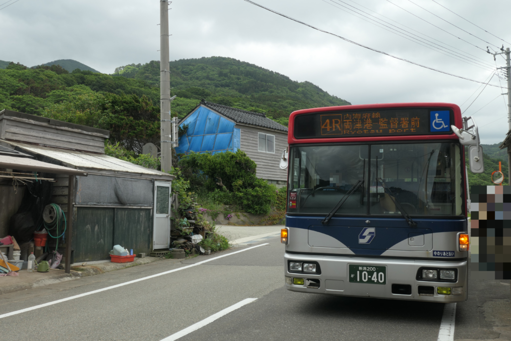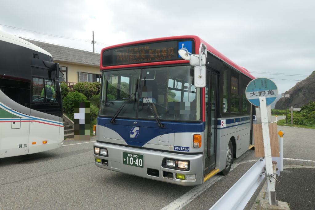 さて、ほどなく乗り継ぎのバスがやってきました。相川から行動を共にしてきた5人ばかりの乗客も、みなこちらへ吸い込まれます。