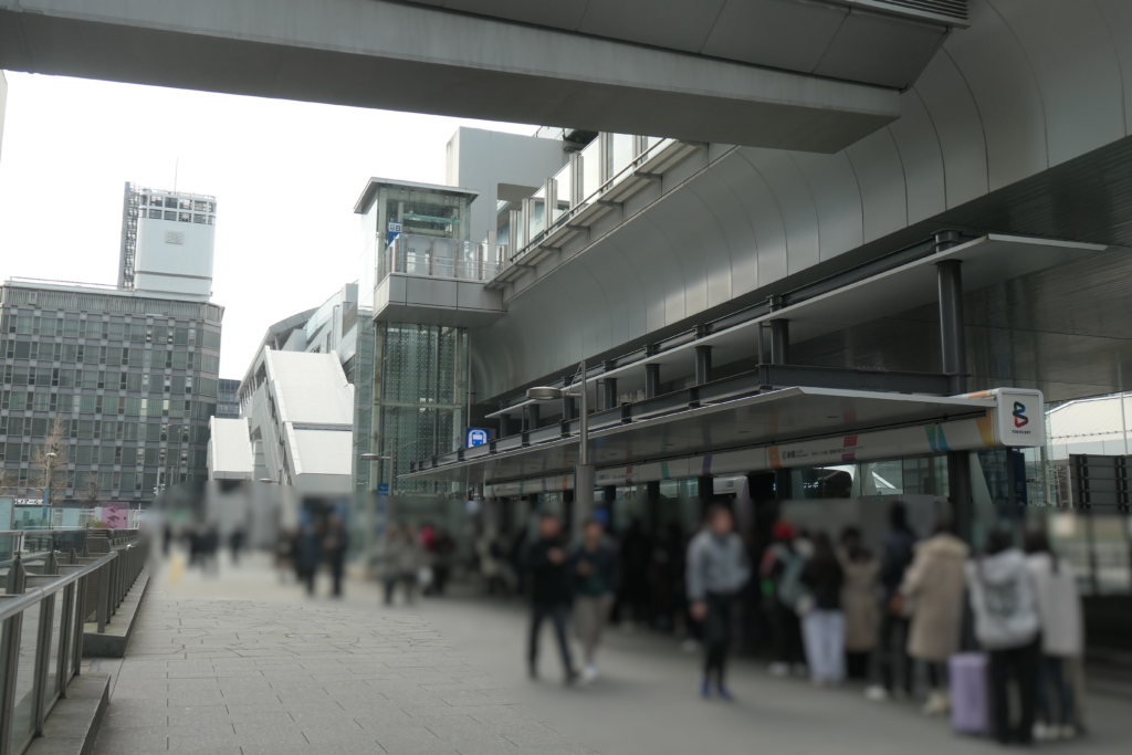 停留所はゆりかもめの駅の真下に設けられており、JR駅からは少々離れています。駅前ロータリーの手狭さを思えばやむを得ないところですが、道案内がパッと見当たらないのはいただけません。また、デッキ・地平・地下道と3ルートもあるのに、どれも屋根の途切れるところがあるのは解消すべきでしょう。