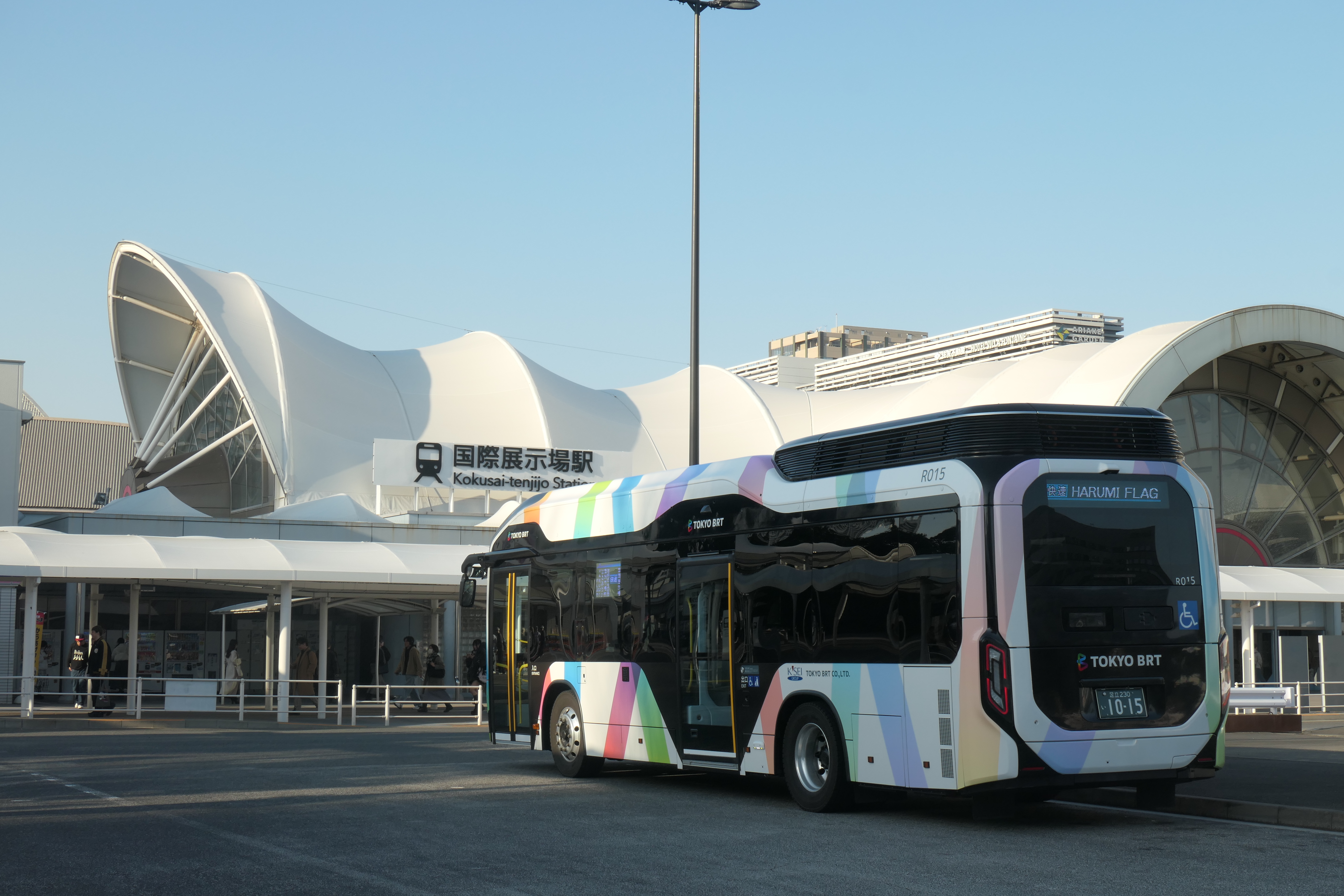 つづいて乗車するのは選手村ルート。日中は15分間隔で運行され、都営バス都05-1系統とともに、東京五輪の旧選手村であるHARUMI FLAGの主たる交通手段となっています。