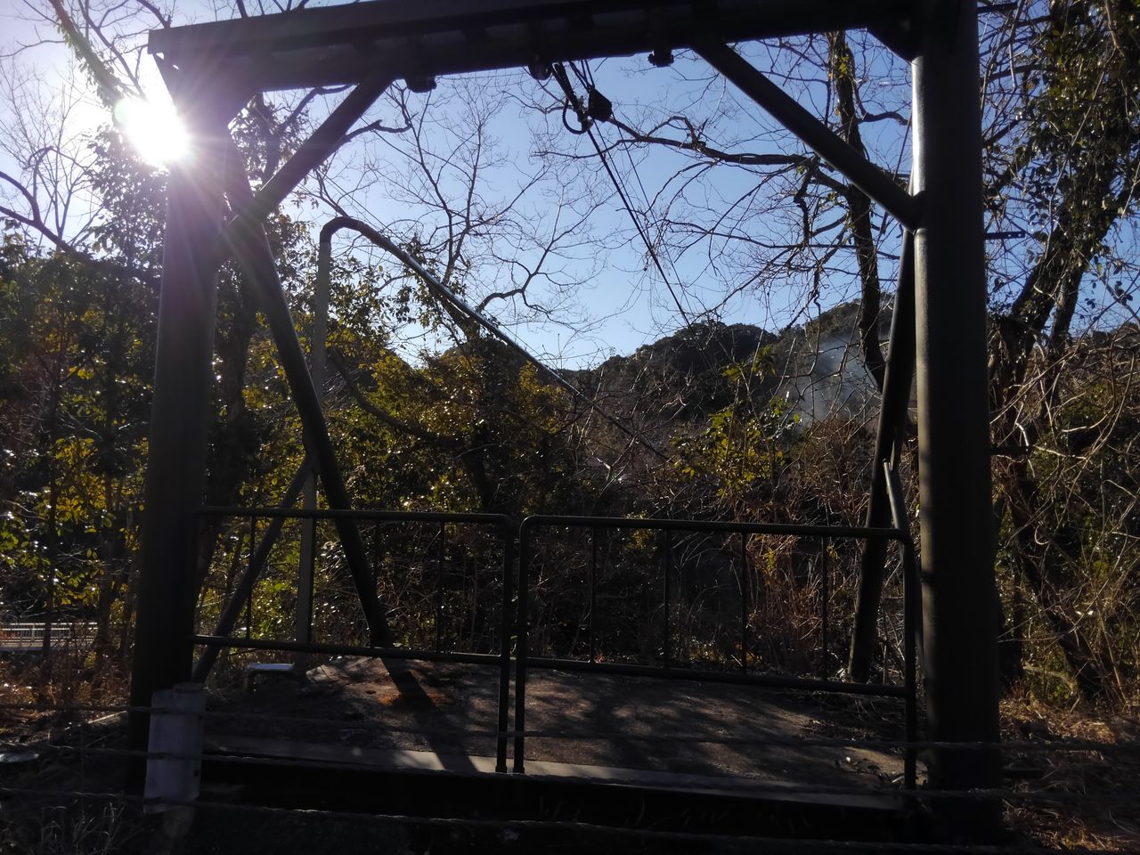 一瞬吊橋かと思った謎の構造物。野猿(日本版ロープウェイ)のようですが、探索とは関係ないのでスルーします。