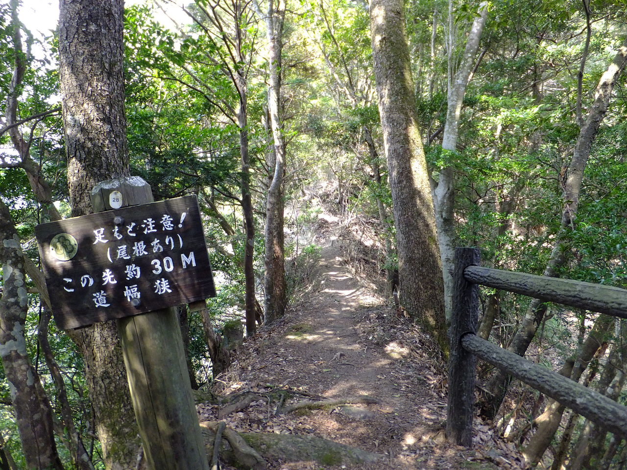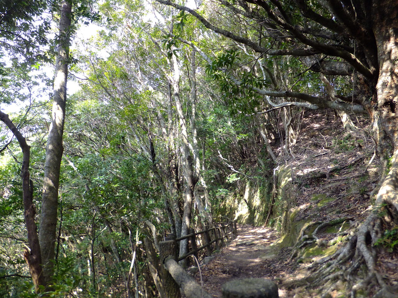 参詣道が合流したことで階段はあれど緩やかな傾斜にもどりました。これくらいならば階段なしで十分な気もしますが、そうすると土砂が流出してしまって尾根伝いの階段道を切り開かざるをえないのかもしれません。
