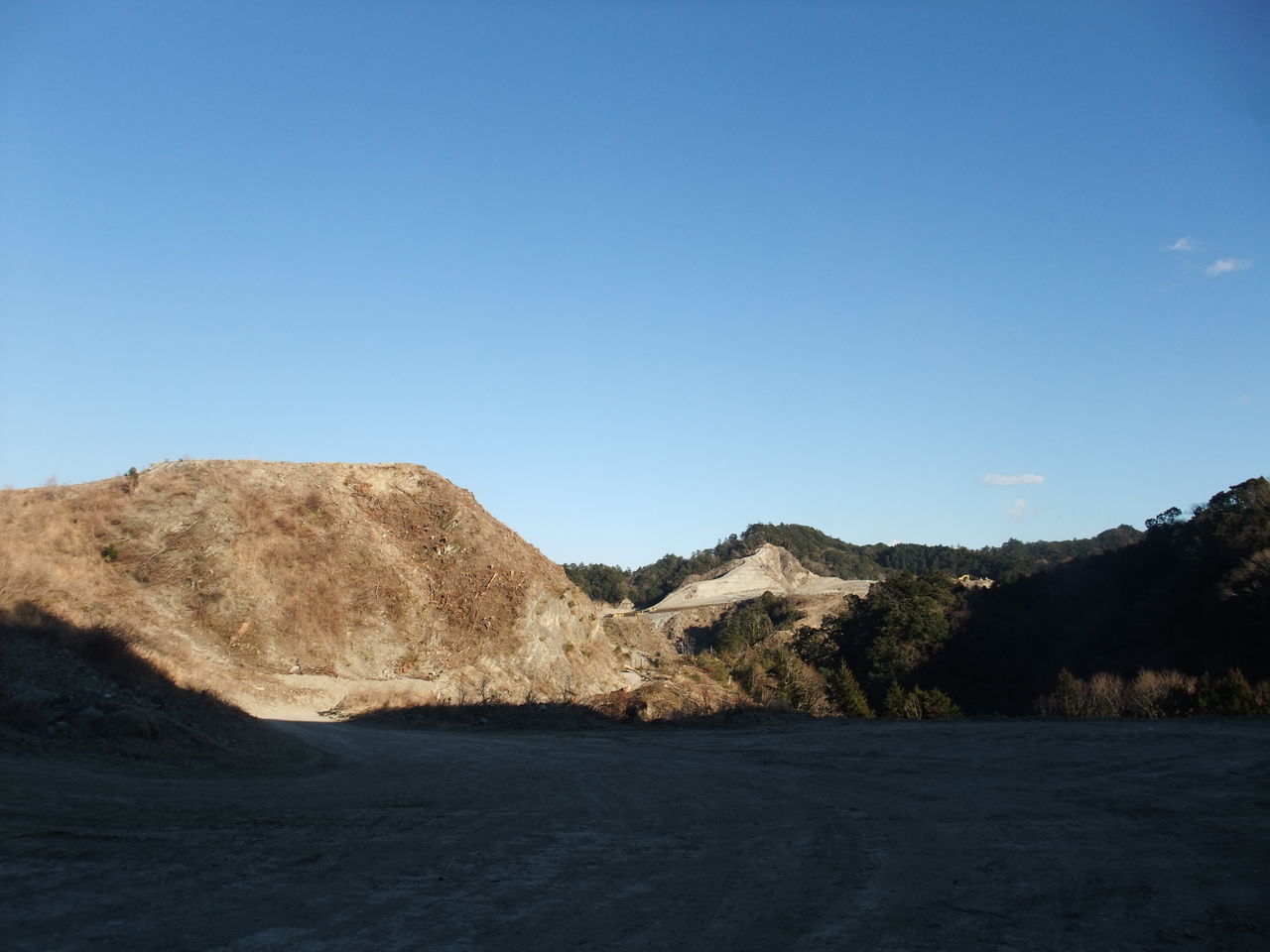 これがゴルフ場造成の跡地か。なんだか採土場みたいに山が禿げてるよ…。って…