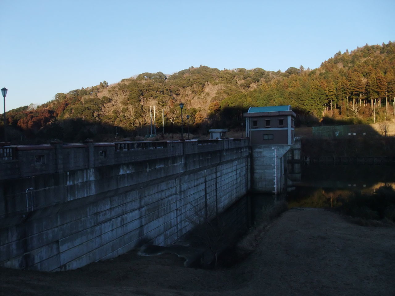 道を下っていくと、笹川湖畔の公園が見えてきました。ダムの水位が低そうだったので水没隧道が見えないか確認してみましたが、よくわからず。せめて写真の一枚でも撮っていれば良かったのですが…(帰りのバスまで30分ほどしかなく、かなり焦っていました)。