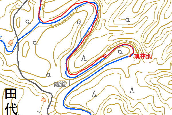 田代川本流を振り返ってみます。自然に軌道がこの谷へアプローチされているような印象を受けますね。