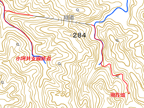 ところで…、この隧道ってこんなに背丈低かったですかね…。なんだか170-180センチしか高さがないように見えます。小坪井沢側坑口のビーバーダムが坑内の堆積に影響を与えているとすれば、隧道内桟橋説を支持するひとつの根拠となりえますが、一方で遠くない未来、この隧道が通行不可になってしまう恐れを示唆しています。