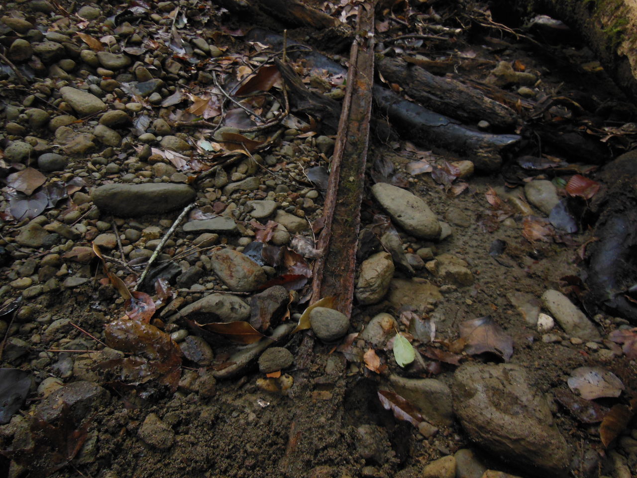 ですが、いくら坑口にビーバーダムがあるとはいえ隧道内に堆積物があることは少なからず隧道内に水の流入があることを示しています。もしかするとこの隧道は隧道内に桟橋を架けることで大雨でも軌道が流されないようにしたのかもしれない、そう思います。連続的な孔で枕木を固定し、水さえ引けばすぐに再使用できるようにしたとすれば、孔にまつわる謎も解決するのです。