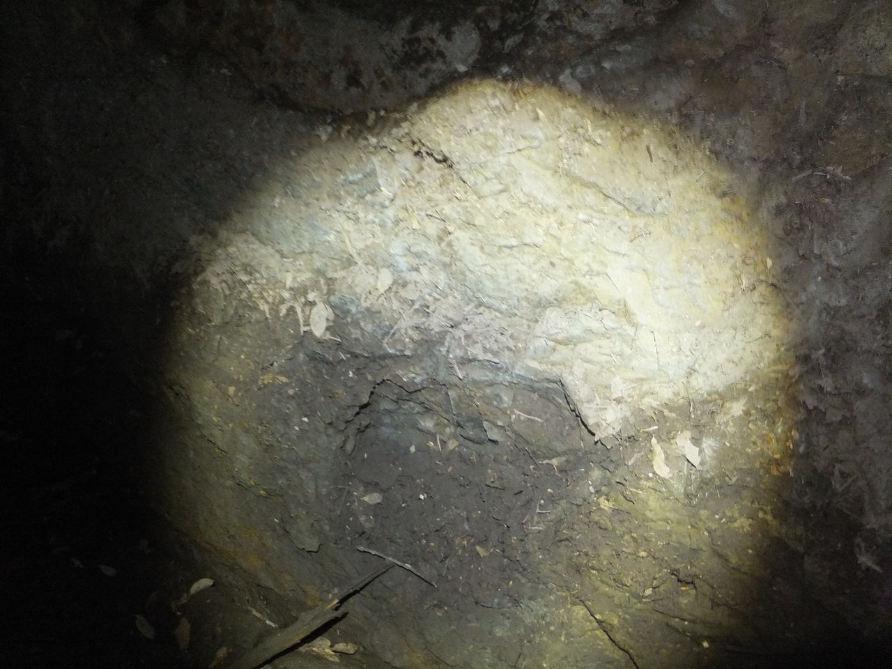 本坪井沢側坑口近くではついに天井部が削られていました。去年も見たような気がするので、心ない探索者が掘ってしまったというわけではないと思いますが。