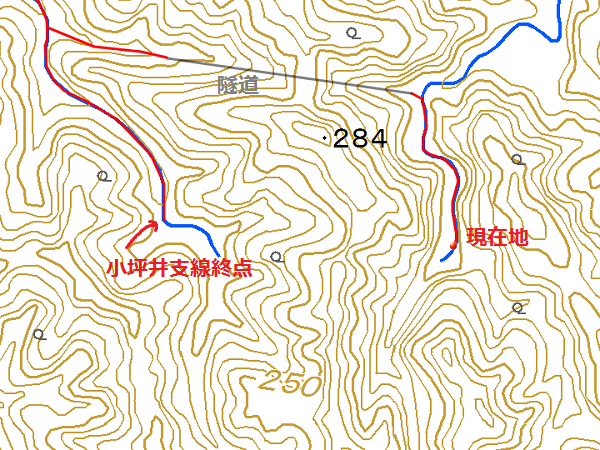 ここでふと思い出すのは、まだ見ぬ田代川源流の隧道です。あの隧道は驚くことにも水路隧道と軌道隧道を兼ねていました。とするとこの隧道も水路を兼ねていたのでは…。しかし、沢の蛇行を突き抜ける田代川源流の隧道と違い、こちらは沢と沢を結ぶものであり、水路を兼ねる必要はないはずです。
