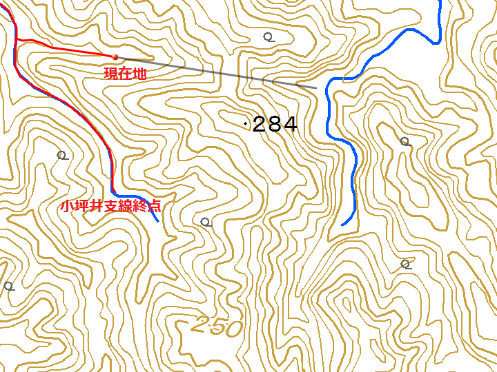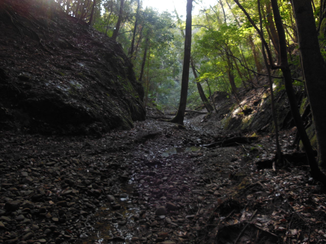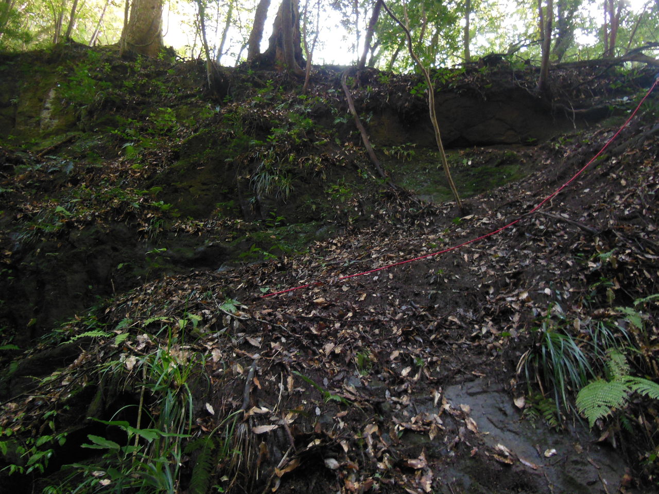 と、急に尾根越えルートの谷が前回探索時よりかなり深く掘られていたことを思い出しました。その犯人として真っ先に思い浮かぶのは、10月末にやって来た台風です。あのときは日光で酷い目を食らいましたが、小坪井にも大きな爪痕を残していたとは…。ん?待てよ?台風が小坪井の谷を荒らしまくっているとすれば…