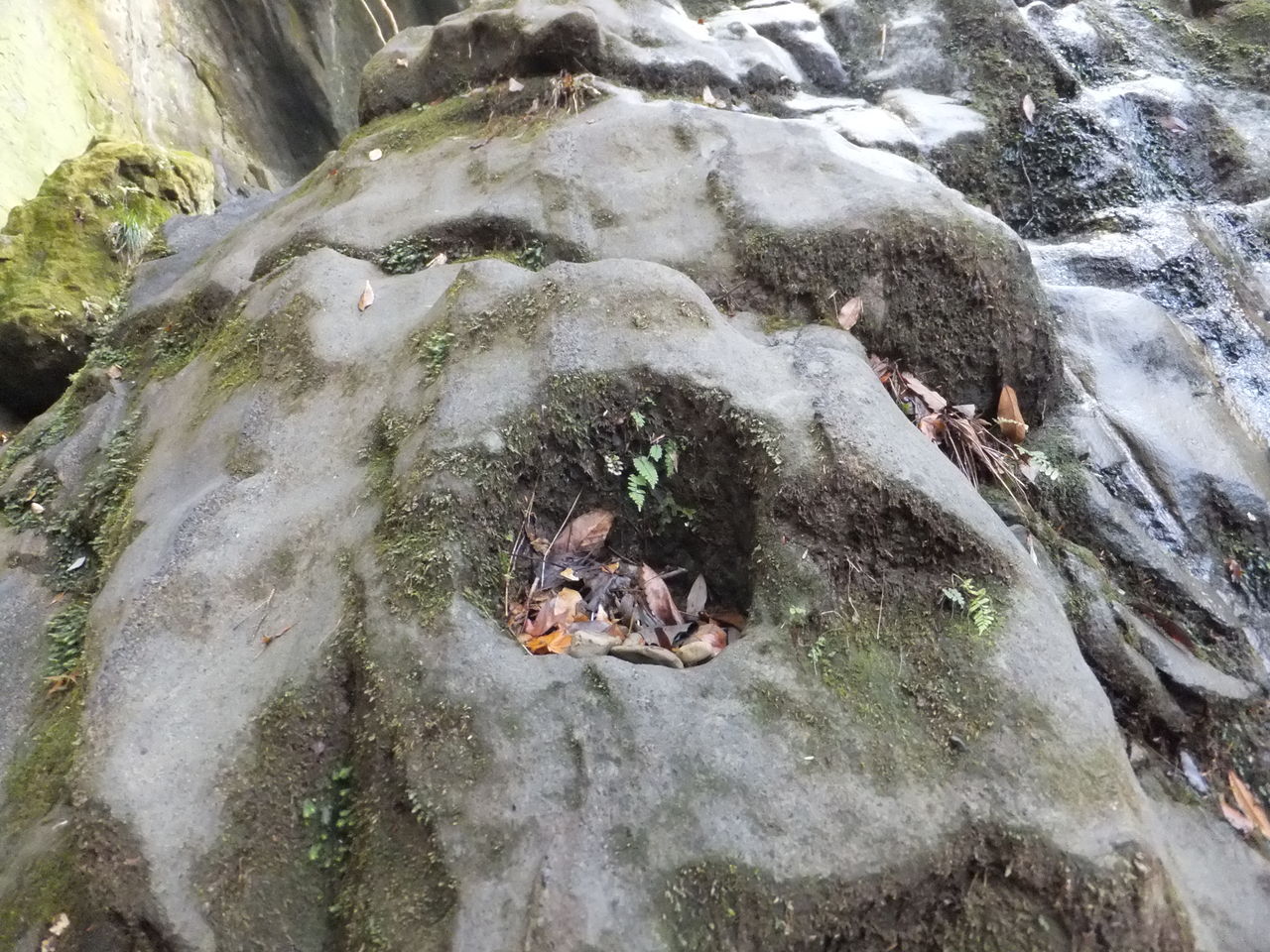 また、孔は左右対称に掘られているわけではなさそうでした。崩れ落ちただけという可能性もありますが、少なくとも探索中に左右揃った孔を発見することはありませんでした。
