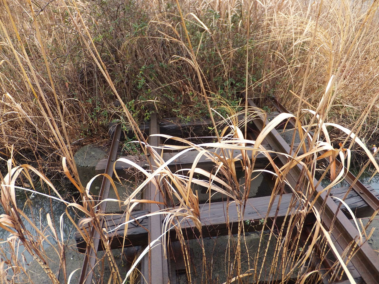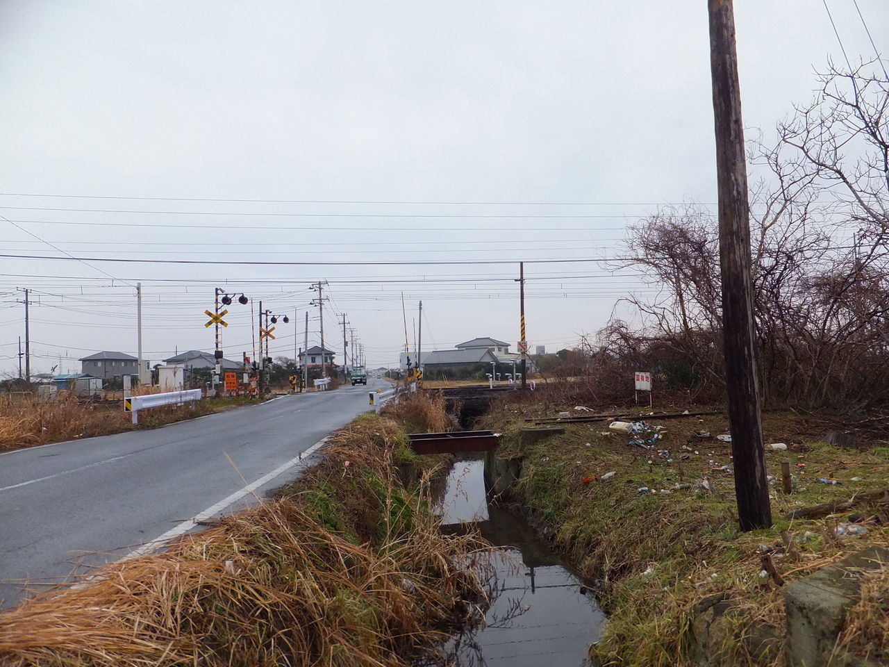合流点は踏切を少し過ぎたところだったようです。道路そばの用水路には橋梁が一つ、二つ、zzz…
