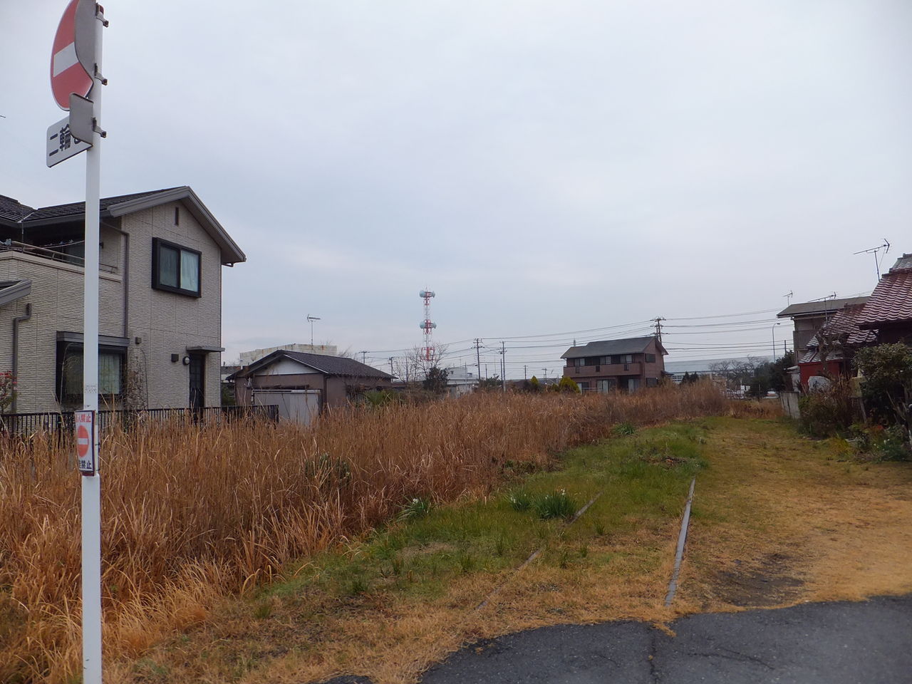 次の踏切で確認してみると内房線にぴったり寄り添う草むした線路が見えました。やっぱりあそこで藪に突っ込んでいなくて正解です。
