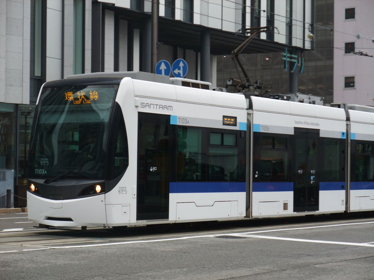 TOYAMAキラリのガラス美術館を見学し、南富山駅前を目指すこととします。やって来たのは先ほどと同じく7000形。あら残念…と思っていると後ろに最新鋭サントラムの姿が!一本見送ってサントラムに乗りましたが、迷っているのかとわざわざ聞きに来てくださった7000形の運転士さん、本当に失礼しました。