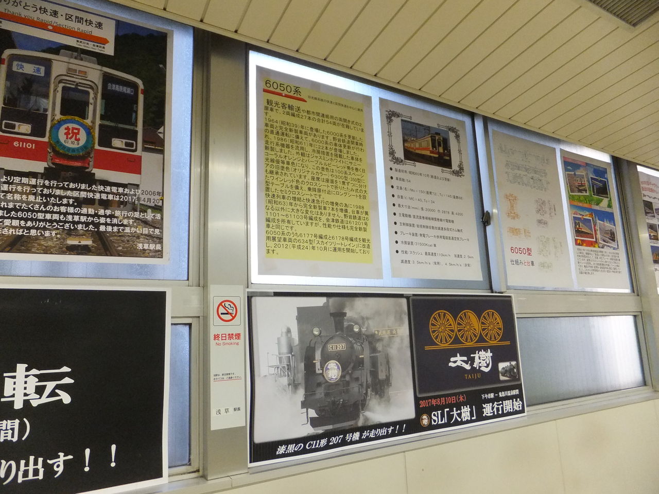 ホーム各所に快速・区間快速や300型(これもこの改正で引退でした)に関するポスターが。注意喚起もしつつ我々の嗜好も理解してくださっている東武さんほんと好き。