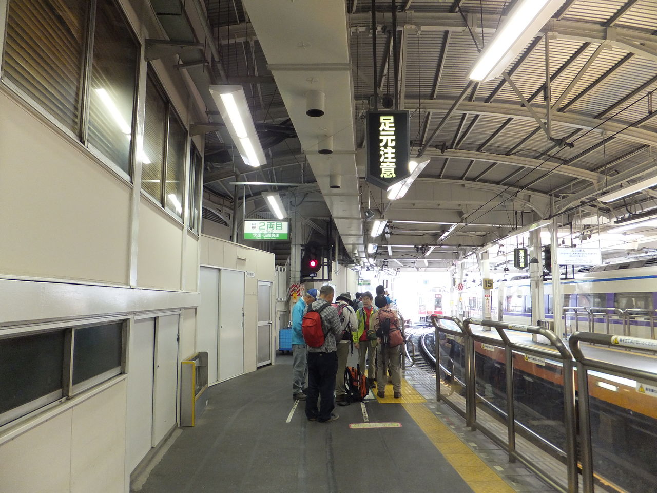 発車どころか列車の入線前なのですが、ホーム各所には撮り鉄と思しき御仁の姿が。東武側もさすがに承知しているようで、注意喚起のアナウンスが繰り返されています。私は撮り鉄というわけではないので、列車入線までドア前で大人しく待っていようと思っていたのですが…