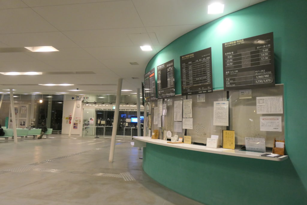 ターミナル内には各社の窓口が並ぶものの、この時間ではさすがに開いておらず、乗船券は船内で購入する形のようです。思いのほか人がいると思ったら、大島行きの西海沿岸商船に吸い込まれていきました。