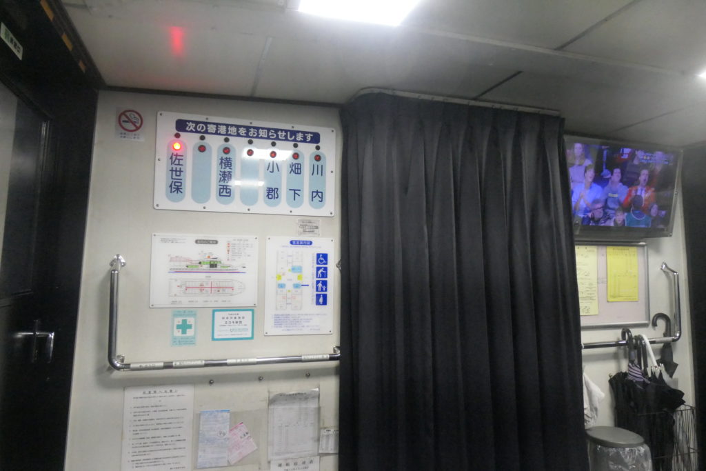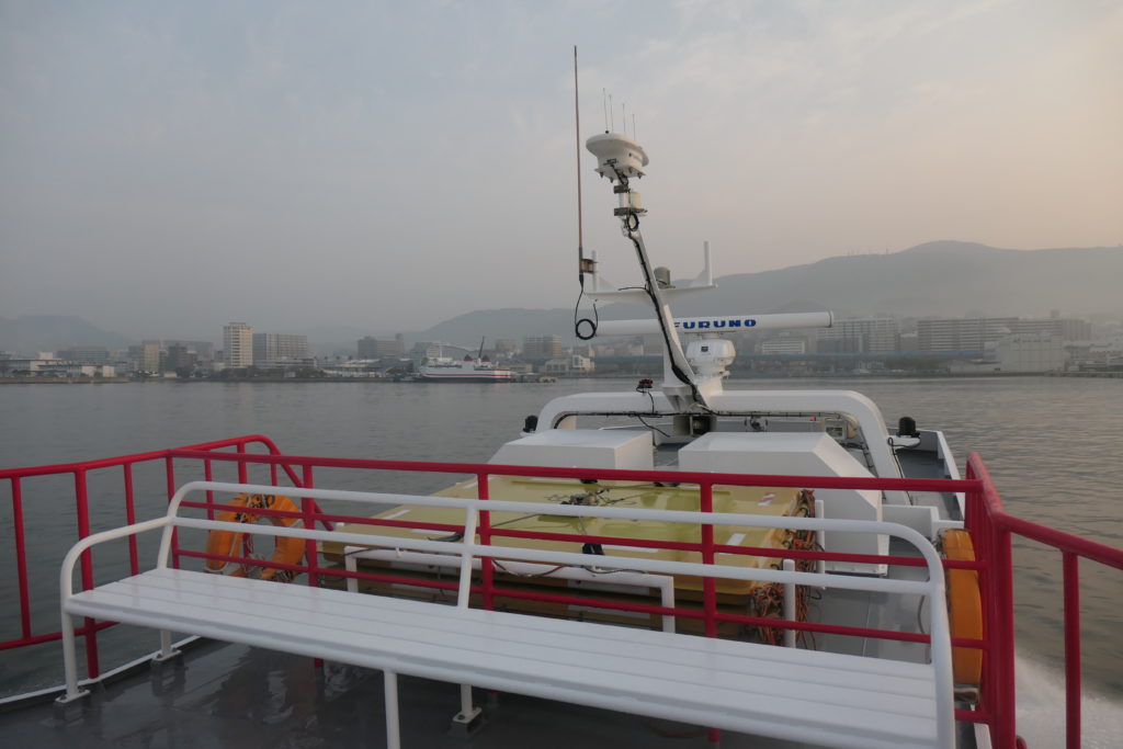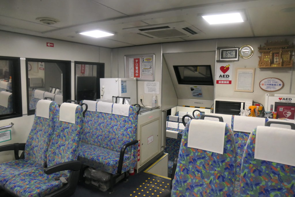 7時を回ったところで帰りの船に乗り込みます。代船の〈せがわ〉は〈さいかい〉よりひと回り小ぶりな感じ。普段は午後の便を担当しているようですが、今日は朝からフル回転です。