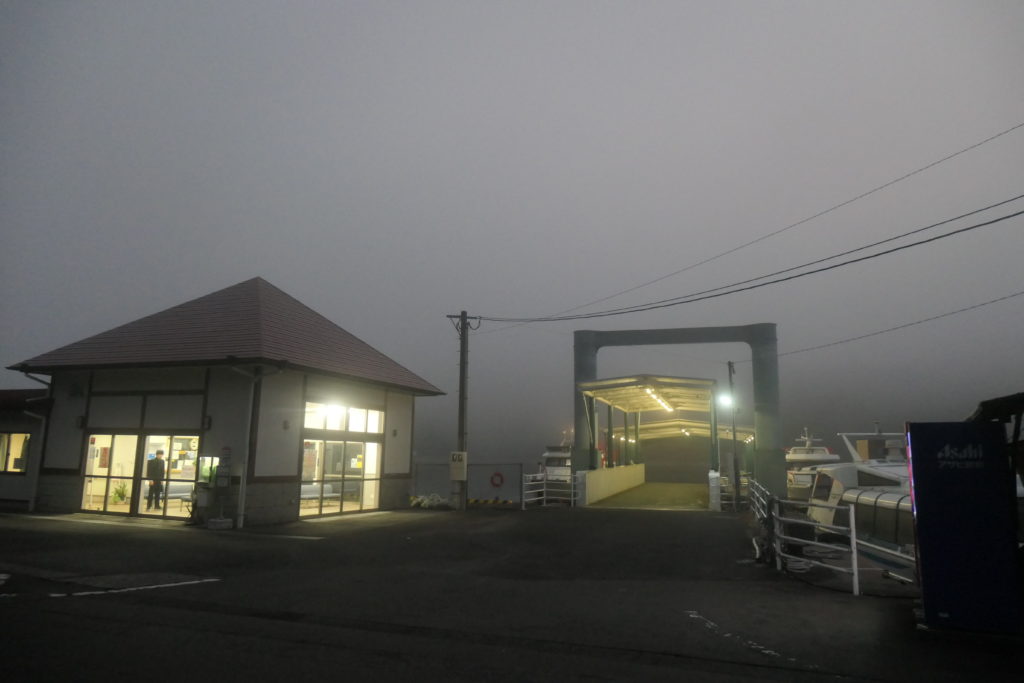 まだ夜の明けぬ朝6時過ぎ、佐世保港の新みなとターミナルを訪れました。上五島行きの九州商船が使用する鯨瀬ターミナルに対して、こちらは主に近距離の航路が発着します。