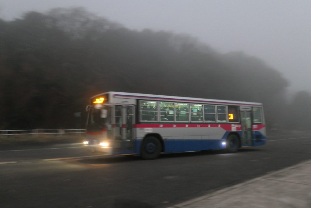 桟橋付近をウロウロしていると、ふいにバスが現れました。板の浦から西彼杵半島の先端部を時計回りに大串まで走る便のようです。船への乗り継ぎがあるのかと思いきや、逆に待合室にいた学生1人を連れて走り去ってしまいました。