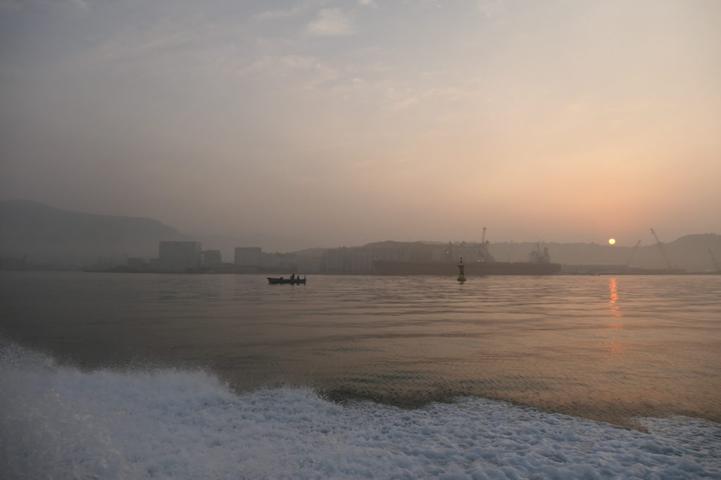 佐世保の街が近付いてきたころ、ようやく東の空に太陽が姿を現しました。