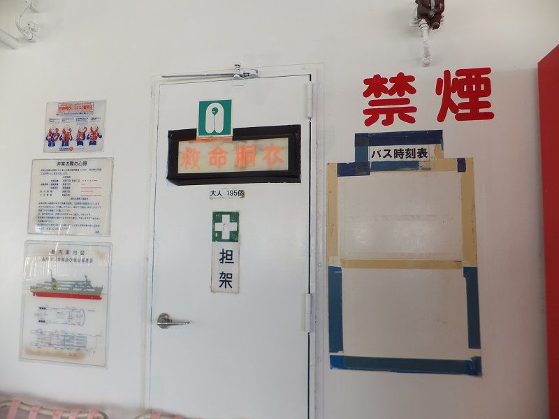 剥がされたバス時刻表。船室外で環境は良くなかったはずですが、なんというかな…。
